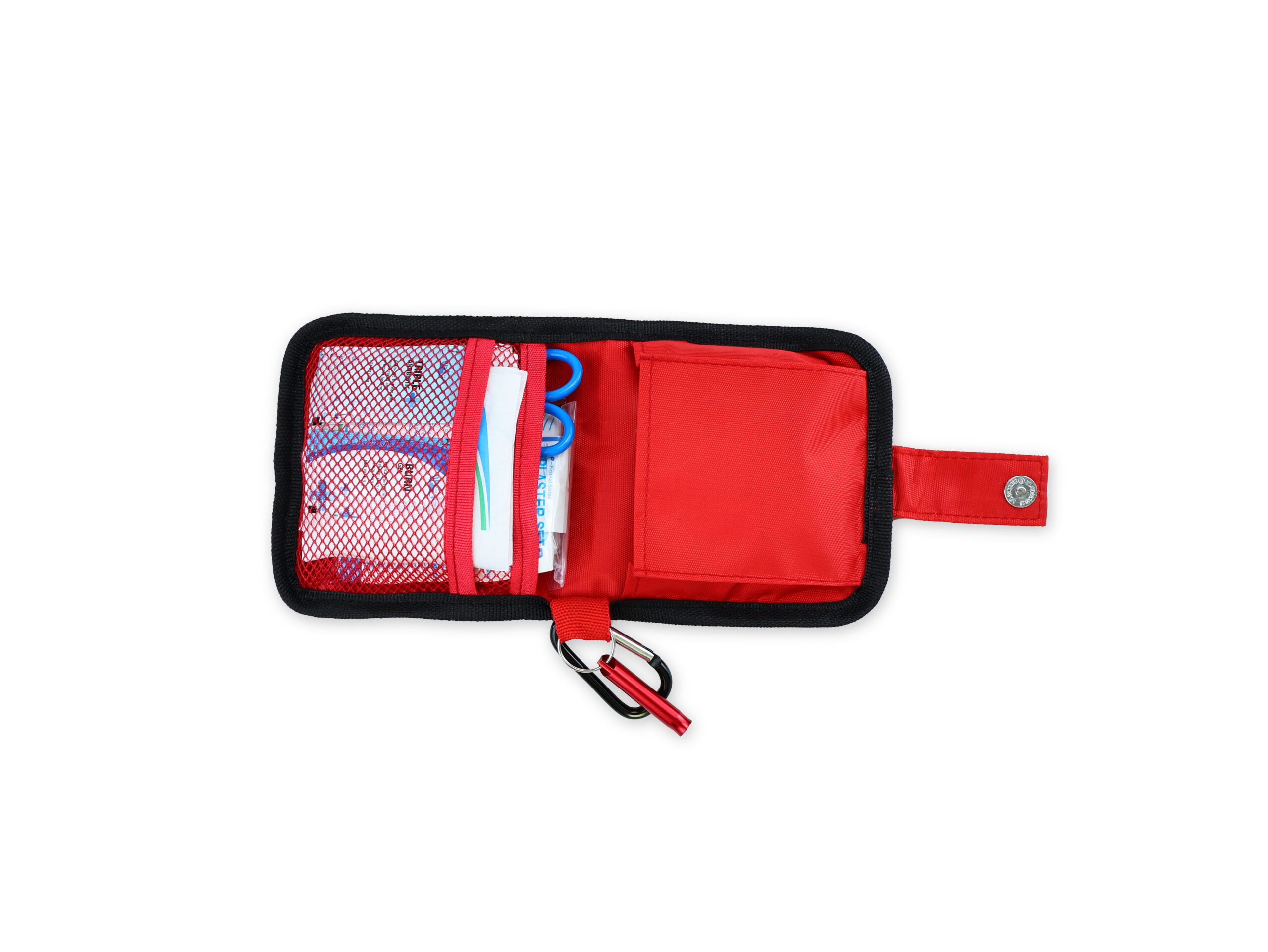Kit de primeiros socorros que te salva a vida! Compacto com 22 artigos essenciais (pensos, ligaduras, luvas, tesouras, apito + mosquetão!). Certificado TUV CE, ISO13485, FDA. Preparado para grandes quantidades, OEM/ODM bem-vindo. Apoiado pela ONU, Costco, Walmart. 20.000 conjuntos diários! FOB Ningbo.